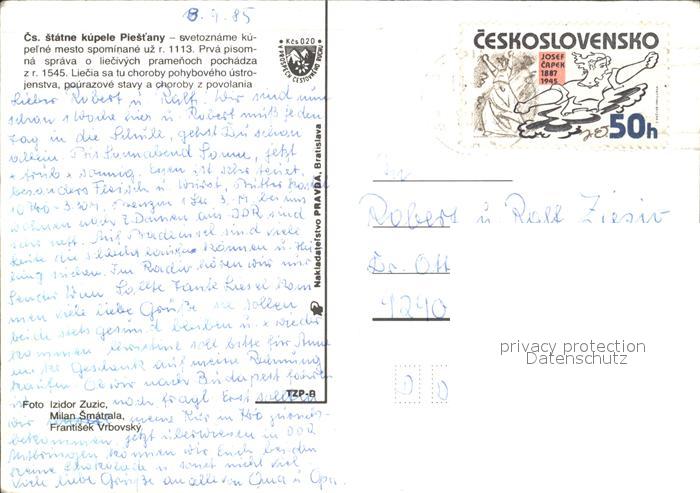 old postcard Piestany postalisch gelaufen Erhaltung siehe scans