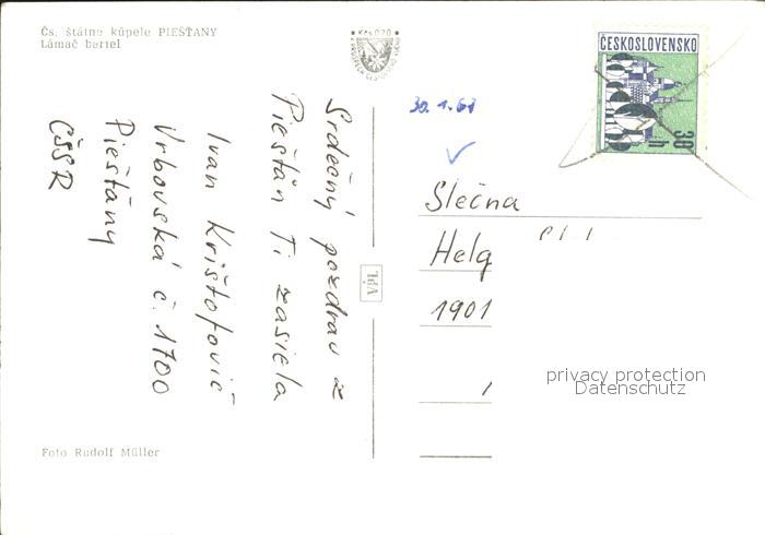 old postcard Piestany postalisch gelaufen Erhaltung siehe scans