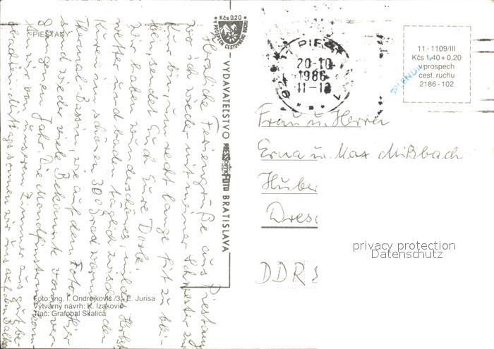 old postcard Piestany Balnea Grand Hotel Swimming Pool postalisch gelaufen Erhaltung siehe scans