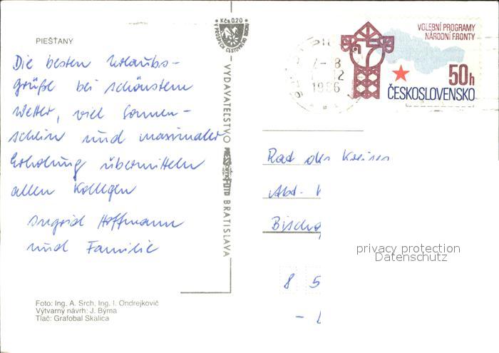 old postcard Piestany Fliegeraufnahme postalisch gelaufen Erhaltung siehe scans