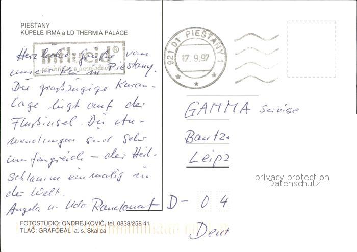 old postcard Piestany Fliegeraufnahme Kupele Piestany postalisch gelaufen Erhaltung siehe scans