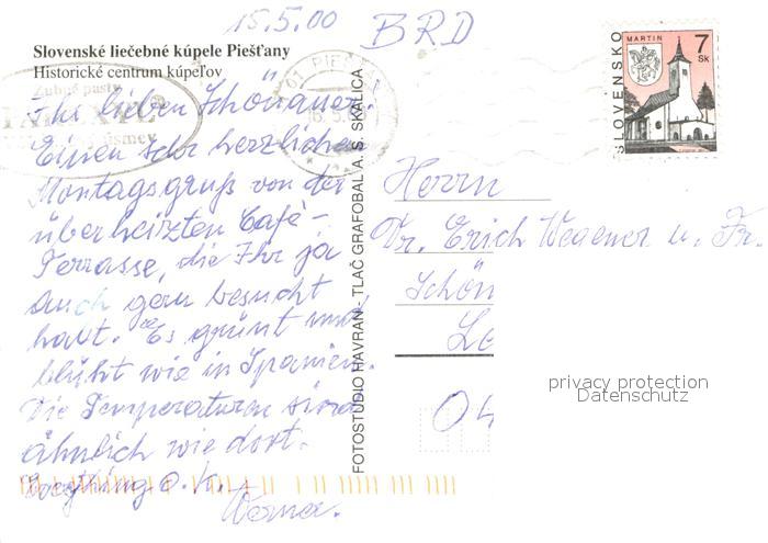 old postcard Piestany Historicke centrum kupelov Heilbad postalisch gelaufen Erhaltung siehe scans [FriedD77]