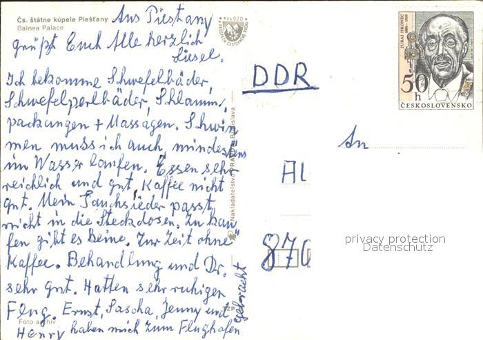 old postcard Piestany Hotel Balnea Palace postalisch gelaufen Erhaltung siehe scans