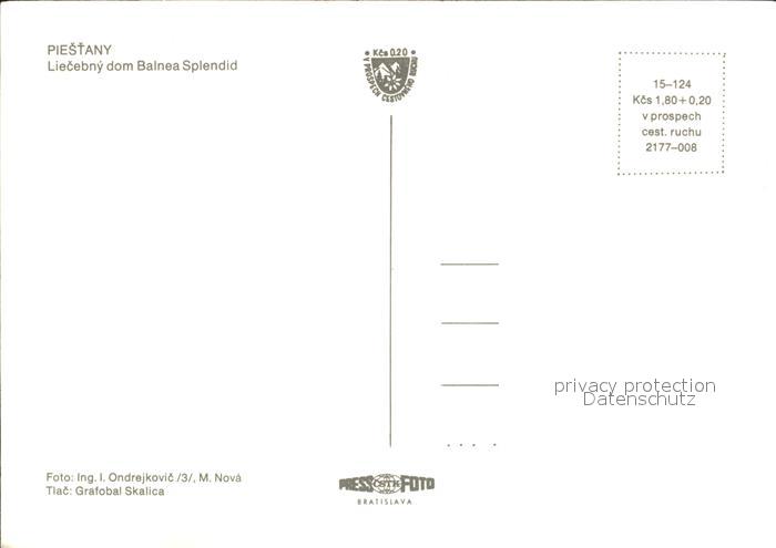 Piestany Hotel Balnea Splendid postalisch nicht gelaufen Erhaltung siehe scans