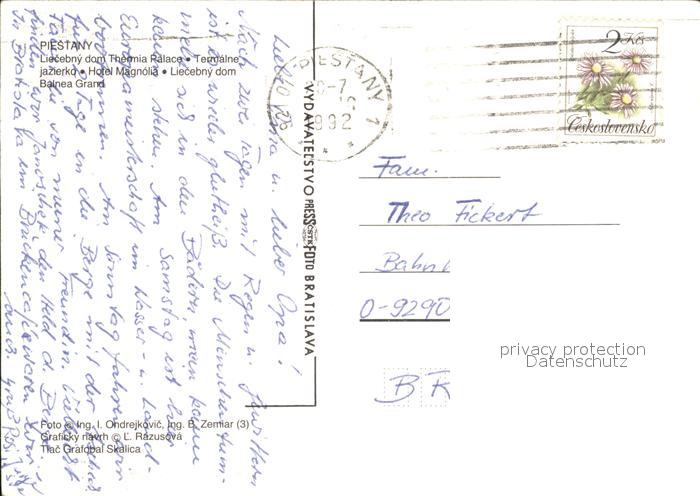 old postcard Piestany Hotel Magnolia Balnea Grand postalisch gelaufen Erhaltung siehe scans