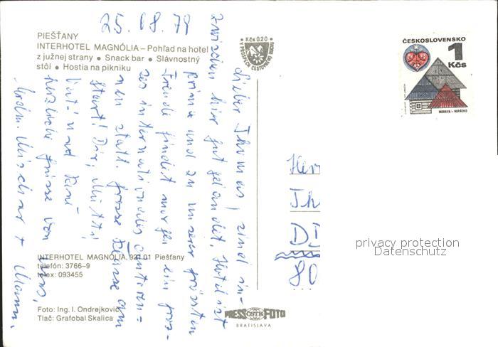 Piestany Interhotel Magnolia postalisch nicht gelaufen Erhaltung siehe scans