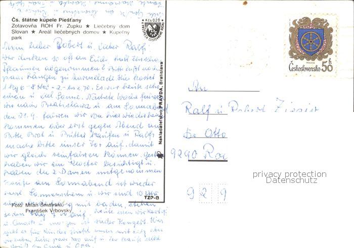 old postcard Piestany Kupelny Park postalisch gelaufen Erhaltung siehe scans