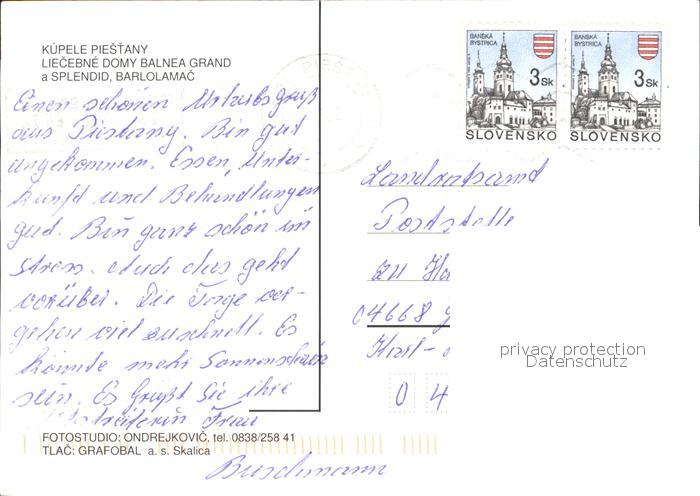 Piestany Liecebne Domy Balnea Grand a Splendid Barlolamac postalisch nicht gelaufen Erhaltung siehe scans
