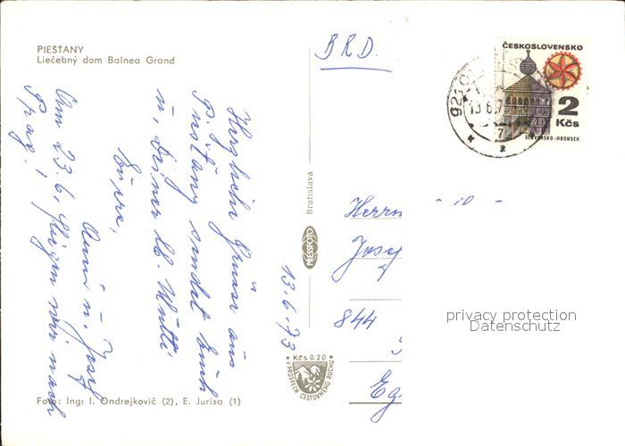 old postcard Piestany Liecebny dom Balnea Grand postalisch gelaufen Erhaltung siehe scans
