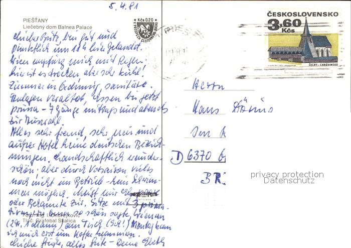 old postcard Piestany Liecebny dom Balnea Palace postalisch gelaufen Erhaltung siehe scans