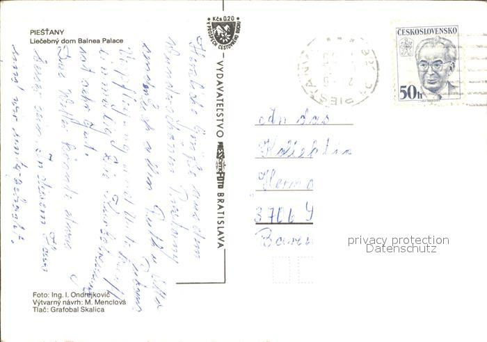 old postcard Piestany Liecebny dom Balnea Palace Kurhaus postalisch gelaufen Erhaltung siehe scans