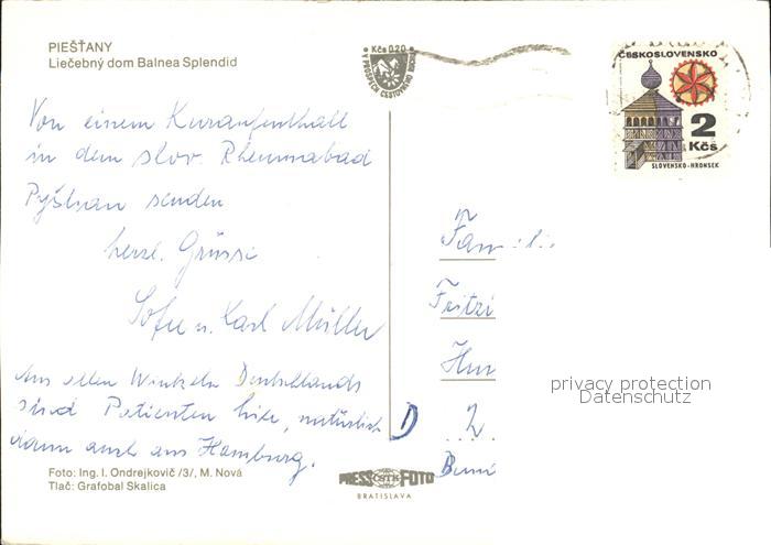 old postcard Piestany Liecebny dom Balnea Splendid Restaurant Swimming Pool postalisch gelaufen Erhaltung siehe scans