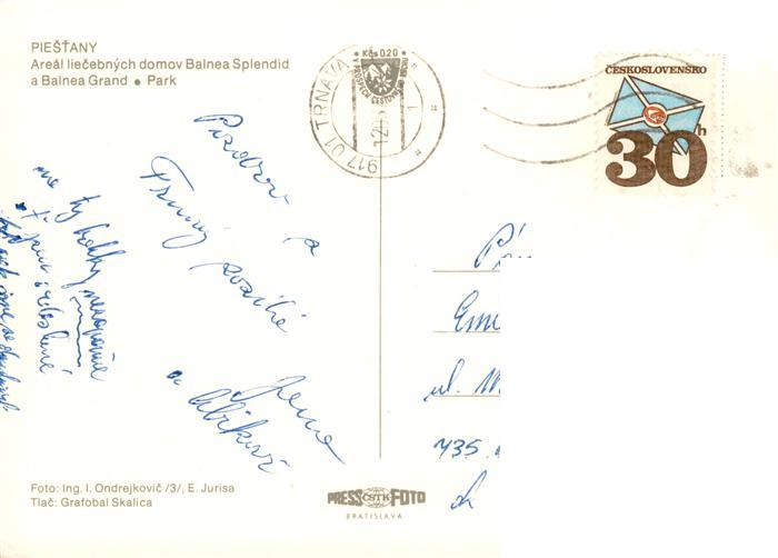 old postcard Piestany Pistian Poestyen SK Areal liecebnych domov Balnea Splendid a Balnea Grand Park postalisch gelaufen Erhaltung siehe scans [FriedD77]
