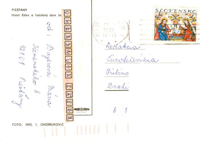 old postcard Piestany Pistian Poestyen SK Hotel Eden postalisch gelaufen Erhaltung siehe scans [WerneD78]