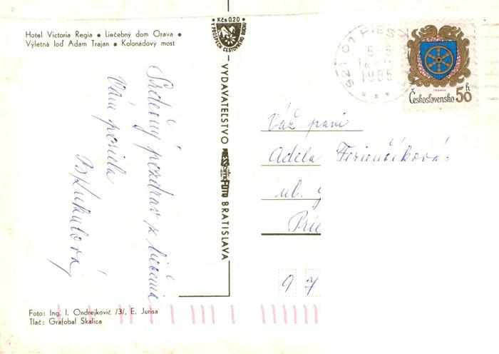old postcard Piestany Pistian Poestyen SK Hotel Victoria Regie Liecebny dom Orava Vyletna lad Adam Trajan Kolonadovy most postalisch gelaufen Erhaltung siehe scans [WerneD78]
