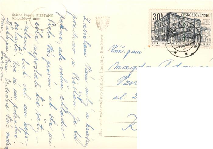 old postcard Piestany Pistian Poestyen SK Kolonadovy most postalisch gelaufen Erhaltung siehe scans [FriedD77]