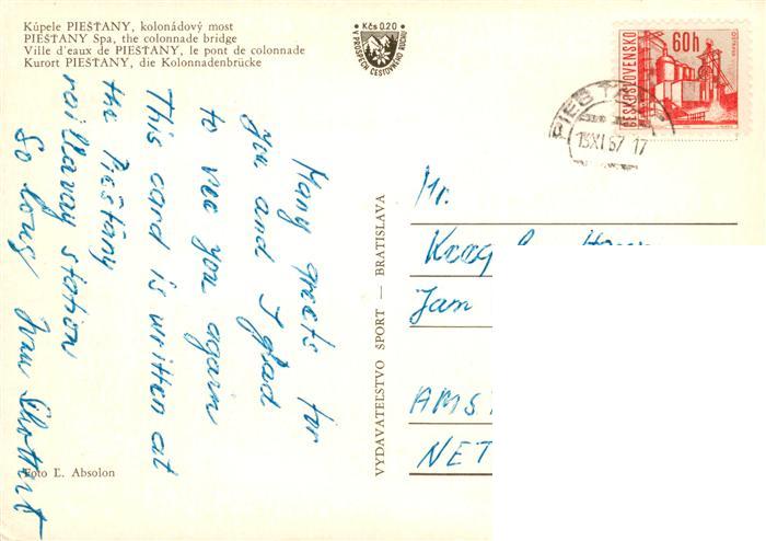 old postcard Piestany Pistian Poestyen SK Kolonnadenbruecke postalisch gelaufen Erhaltung siehe scans [FriedD77]
