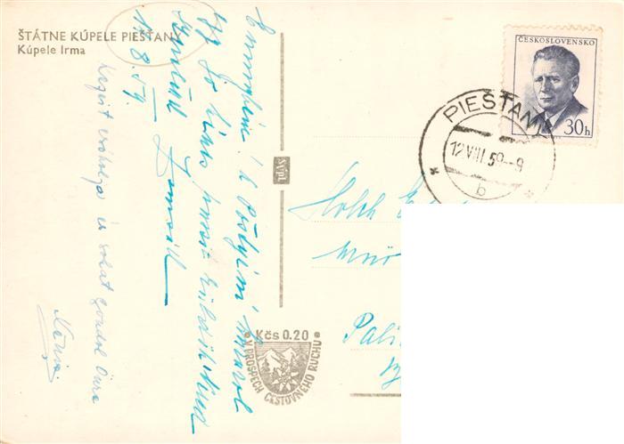 old postcard Piestany Pistian Poestyen SK Kupele Irma postalisch gelaufen Erhaltung siehe scans [FriedD77]