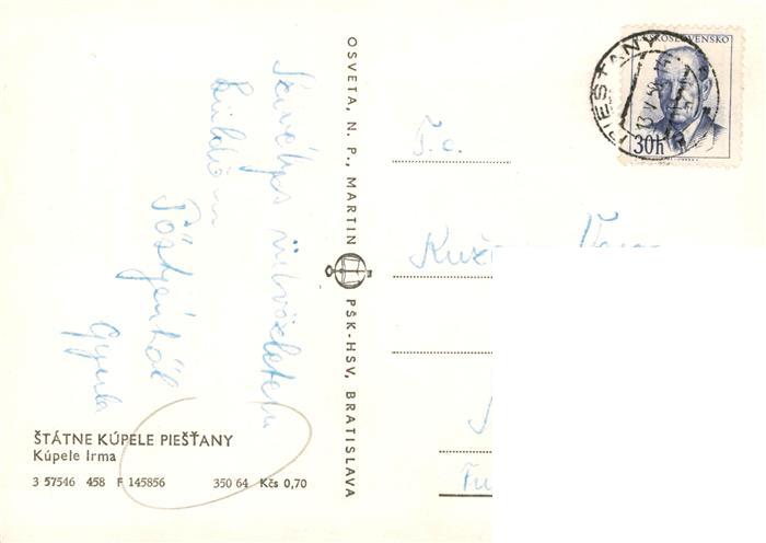 old postcard Piestany Pistian Poestyen SK Kupele Irma postalisch gelaufen Erhaltung siehe scans [WerneD78]