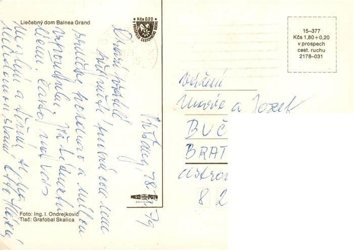 old postcard Piestany Pistian Poestyen SK Liecebny dom Balnea Grand postalisch gelaufen Erhaltung siehe scans [WerneD78]