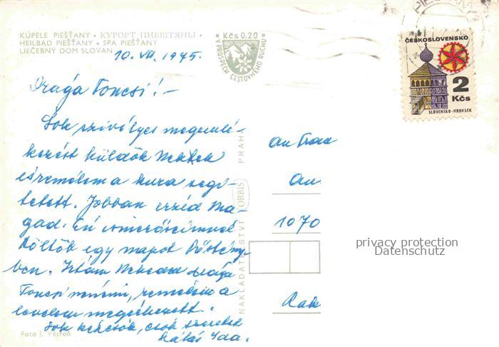 74086270 old postcard Piestany Pistian Poestyen SK Liecebny Dom Slovan postalisch gelaufen Erhaltung siehe scans [WerneD78] KatCode: 11490