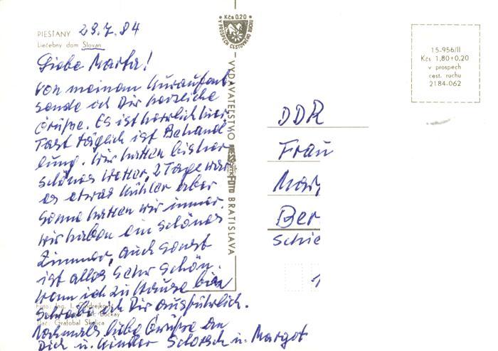 old postcard Piestany Pistian Poestyen SK Liecebny dum Slovan postalisch gelaufen Erhaltung siehe scans [FriedD77]
