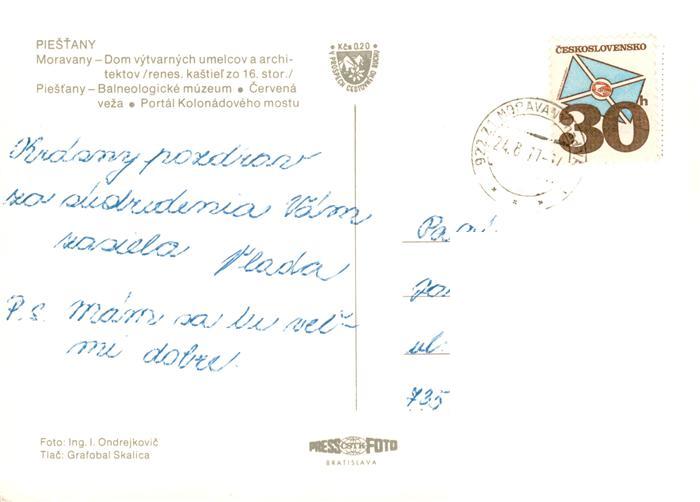 old postcard Piestany Pistian Poestyen SK Moravany Dom Museum Portal Kolonnadenbruecke postalisch gelaufen Erhaltung siehe scans [FriedD77]