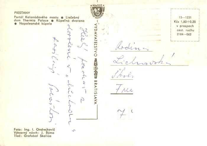 old postcard Piestany Pistian Poestyen SK Portal Kolonnadenbruecke Kurhaus Badehaus Napoleonische Baeder postalisch gelaufen Erhaltung siehe scans [FriedD77]