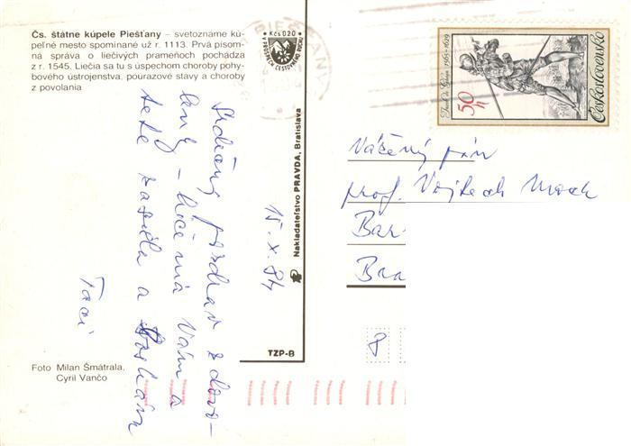 old postcard Piestany Pistian Poestyen SK Teilansichten Kolonnadenbruecke postalisch gelaufen Erhaltung siehe scans [FriedD77]