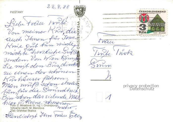 74086269 old postcard Piestany Pistian Poestyen SK Thermia Palace Gastraeume Eingang postalisch gelaufen Erhaltung siehe scans [WerneD78] KatCode: 11490