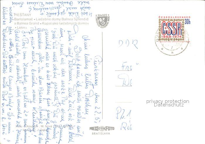old postcard Piestany Schwimmbad Statue Napoleonbad postalisch gelaufen Erhaltung siehe scans
