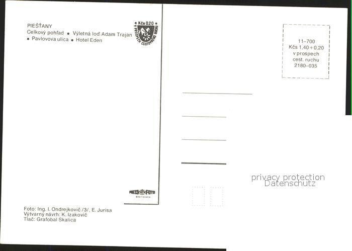 Piestany Vyletna lod Adam Trajan Pavlovova ulica Hotel Eden postalisch nicht gelaufen Erhaltung siehe scans