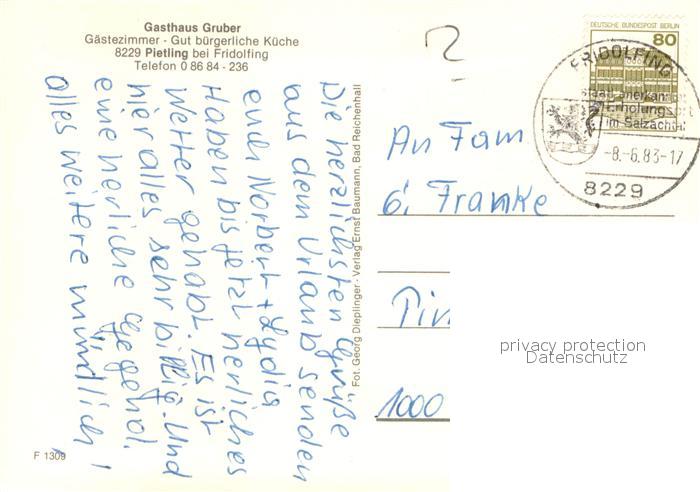 73666159 alte Postkarte Pietling Gasthaus Gruber postalisch gelaufen Erhaltung siehe scans [LiesaD40] KatCode: 11110009189118