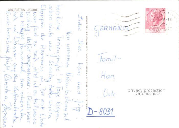 old postcard Pietra Ligure Fliegeraufnahme postalisch gelaufen Erhaltung siehe scans