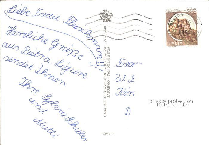 old postcard Pietra Ligure Fliegeraufnahme Parks Strand Segelschiff postalisch gelaufen Erhaltung siehe scans
