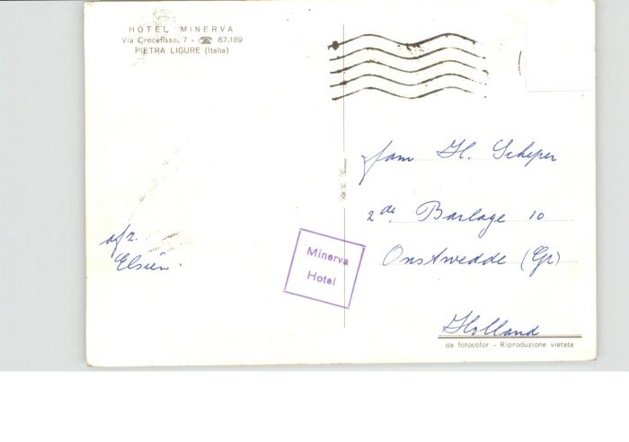 old postcard Pietra Ligure Hotel Minerva Via Crocefisso postalisch gelaufen