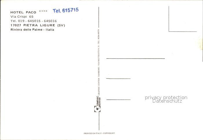 Pietra Ligure Hotel Paco postalisch nicht gelaufen Erhaltung siehe scans