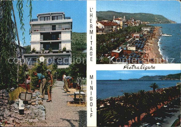 old postcard Pietra Ligure Minigolf Strand postalisch gelaufen Erhaltung siehe scans