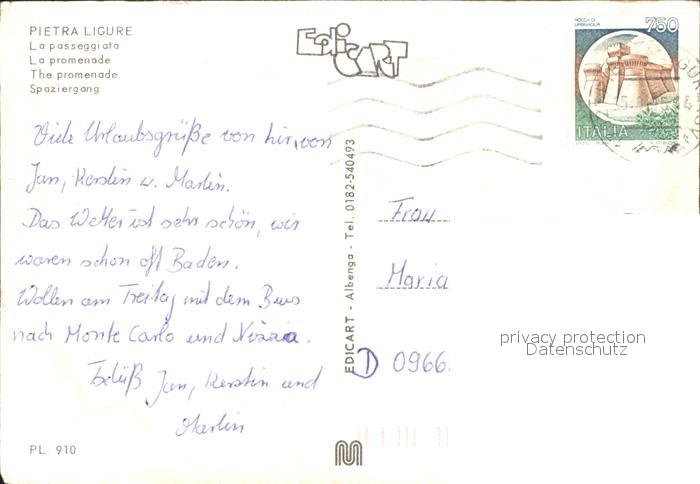 old postcard Pietra Ligure Passeggiata Uferpromenade Strand Musikerin postalisch gelaufen Erhaltung siehe scans