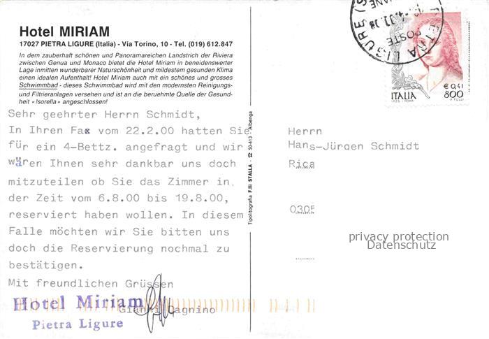74023803 old postcard Pietra Ligure Pietraligure IT Hotel Miriam Wasserfall Swimming Pool postalisch gelaufen Erhaltung siehe scans [FriedD77] KatCode: 11240