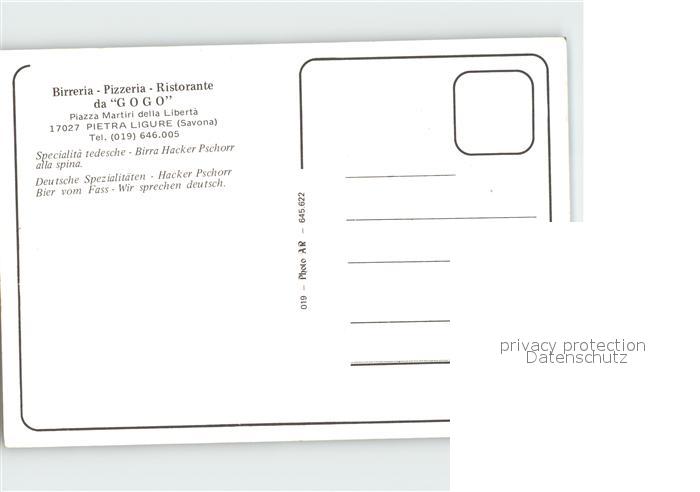 Pietra Ligure Restaurant Pizzeria Da Gogo postalisch nicht gelaufen Erhaltung siehe scans