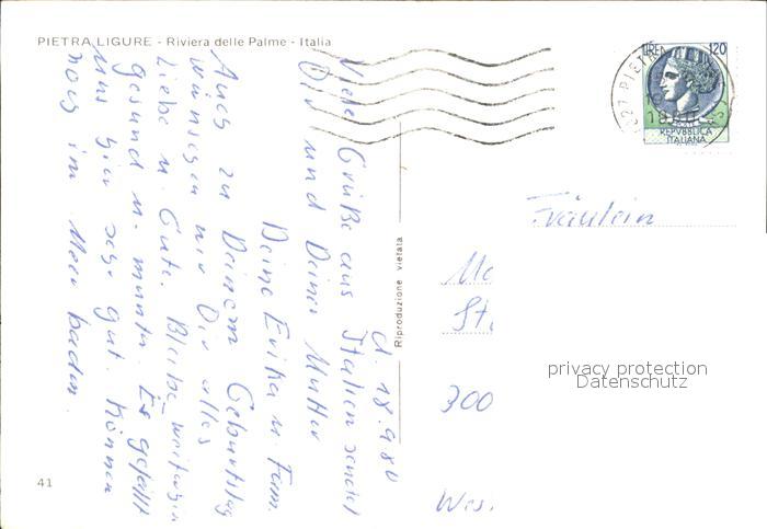 old postcard Pietra Ligure Riviera delle Palme postalisch gelaufen Erhaltung siehe scans