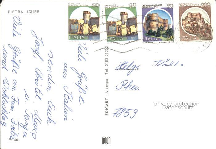 old postcard Pietra Ligure Strand Ortsansichten Nachtaufnahme postalisch gelaufen Erhaltung siehe scans