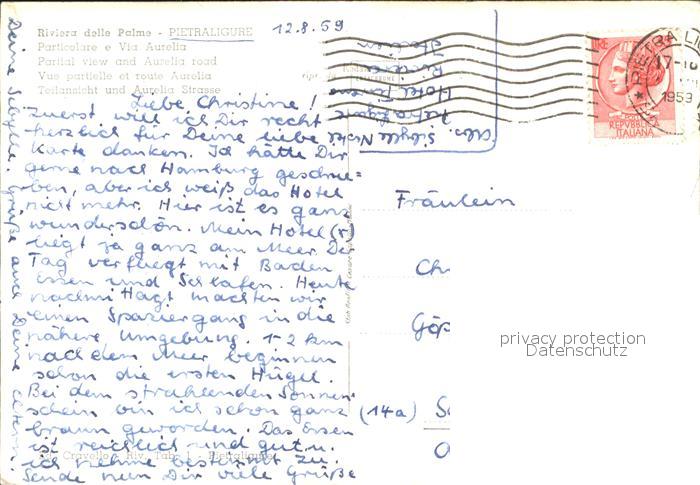 old postcard Pietraligure Riviera delle Palme Aureliastrasse Via Aurelia postalisch gelaufen