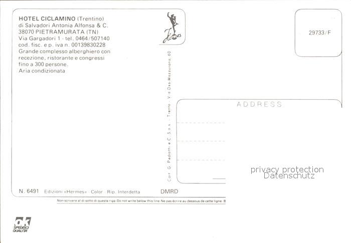 Pietramurata Hotel Ciclamino postalisch nicht gelaufen Erhaltung siehe scans