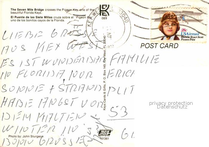 72690669 old postcard Pigeon Key Seven Mile Bridge postalisch gelaufen Erhaltung siehe scans [NatalD47] KatCode: 14140110000000