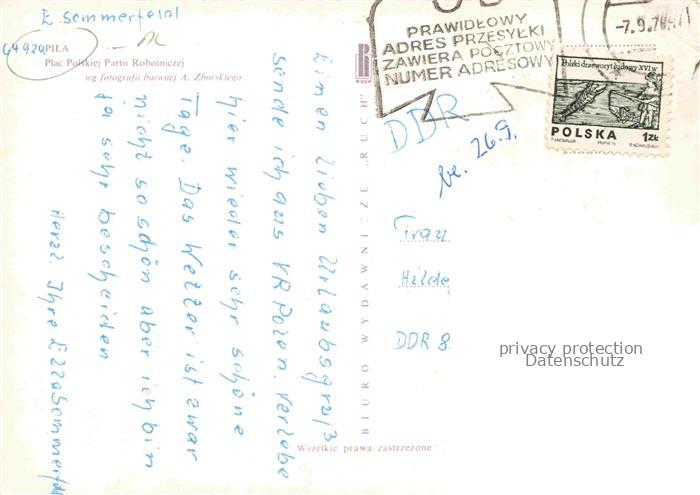 74088013 old postcard Pila al Piastow Schneidemuehl PL Plac Plskiej Partii Robotniczej postalisch gelaufen Erhaltung siehe scans [WerneD78] KatCode: 11410