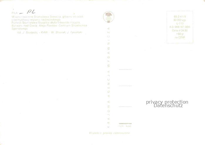 74152779 Pila al Piastow Schneidemuehl Pommern PL Denkmal Stanislawa Staszic Panorama Bulwary nad Gwda Centrum Strzelectwa Sportowego postalisch nicht gelaufen Erhaltung siehe scans [WerneD78] KatCode: 11410