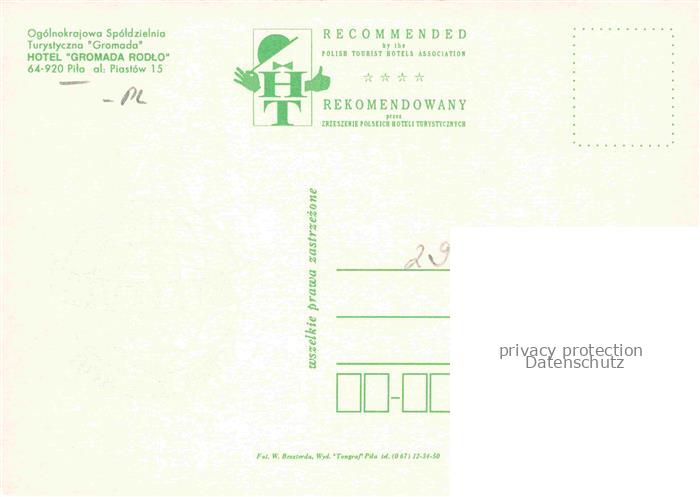 74141871 Pila al Piastow Schneidemuehl Pommern PL Hotel Gromada Rodlo postalisch nicht gelaufen Erhaltung siehe scans [FriedD77] KatCode: 11410