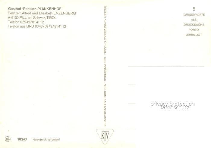 73720240 Pill Tirol Gasthof Pension Plankenhof postalisch nicht gelaufen Erhaltung siehe scans [WerneD78] KatCode: 11390335070921